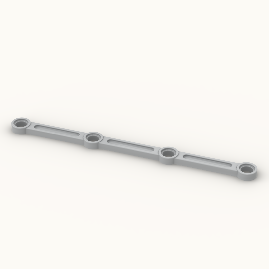 Precision 3D printed side rod measuring 13 studs in length with 4 connection holes.